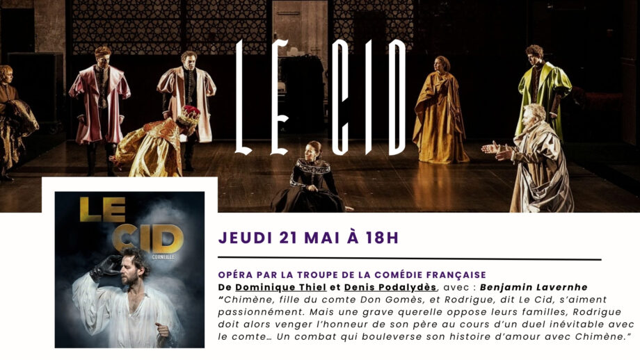 Opéra - Par la Troupe de la Comédie Française De Dominique Thiel et Denis Podalydès, avec : Benjamin Lavernhe “Chimène, fille du comte Don Gomès, et Rodrigue, dit Le Cid, s’aiment passionnément. Mais une grave querelle oppose leurs familles, Rodrigue doit alors venger l’honneur de son père au cours d’un duel inévitable avec le comte… Un combat qui bouleverse son histoire d’amour avec Chimène.” #Opéra #Cinebisca #Biscarrosse